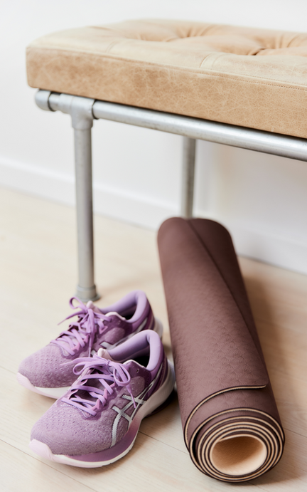 En måtte, to yogablokke, en almindelig stol og to håndvægte. Vi skal frem til at løfte lidt tungere end vi måske hidtil har gjort. Det er dog yderst vigtigt at give kroppen mindst 4-6 ugers tilvænning, før vi øger til stor belastning. Læs mere her.